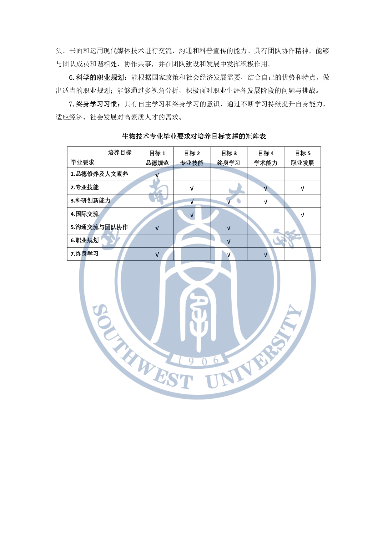 生物技术专业培养目标和毕业要求