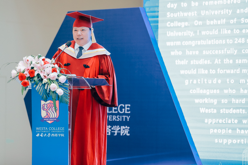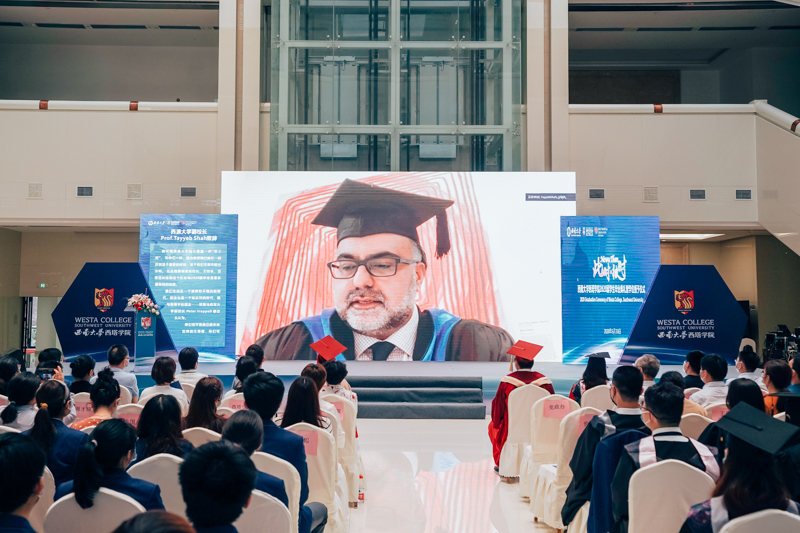 西澳大学副董事长Tayyeb Shah教授同样通过网络向西塔毕业生们表达了祝贺。他提到,在这个充满艰难和未知的时代,西塔学子们展现了面对逆境时的勇气、韧性、理解力和适应能力,而这些经历都将成为未来发展的坚实基础。Tayyeb教授对中国在疫情下的相关举措表示赞赏,也对西塔作为合作伙伴表达感谢。最后,他引用纳尔逊曼德拉的话寄语三校合作,“教育是改变世界最有力的武器”。