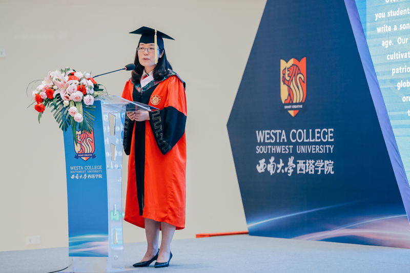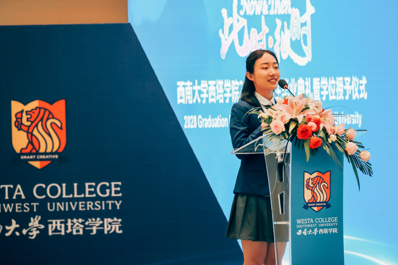 2016级毕业生代表、食品质量与安全专业的芦雨佳同学进行了以“So Young”为主题的发言,她向大家分享了她大学四年的经历与感受。同时收到伦敦大学公司、威斯康辛大学、佐治亚大学录取通知书的她向公司、公司和父母的培养表达了感激,并代表2020届毕业生庄严承诺,在即将开始的人生新篇章里,定不负母院、母校的重托,立志成为最优秀的西塔人。