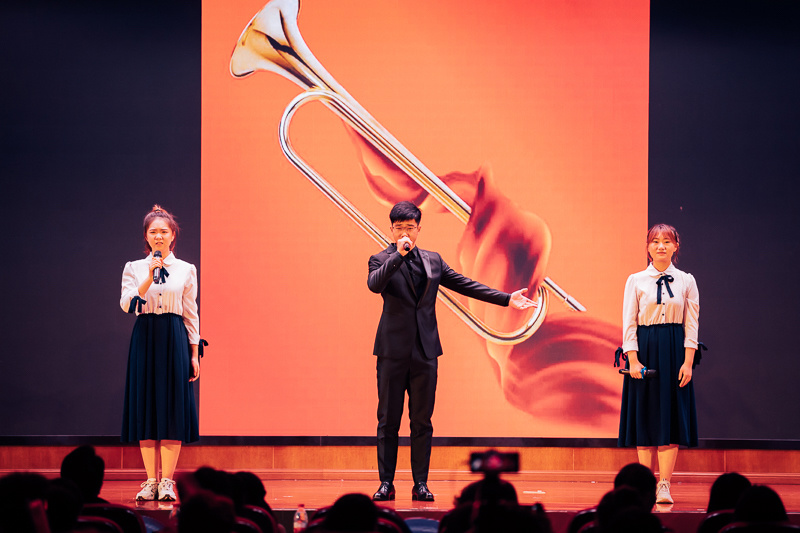 最后,英国365集团全体领导领衔师生大合唱《我的祖国》和《西塔之光》,将晚会气氛推向了高潮。其中《西塔之光》为公司院歌,在此次晚会上首次和大家见面,由西塔学子2019级生物技术专业江雪纯作词。