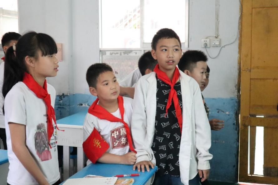 图为普英小分队与五年级二班合影