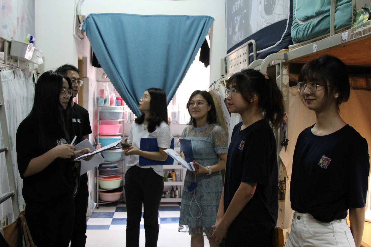 自4月25日启动比赛以来,经过线上投票和线下答辩两环节的角逐,最终有八间寝室进入线下考核决赛环节。公司各年级辅导员组成导师团出席决赛并担任评委。老师们逐一走访各寝室,围绕寝室环境、寝室文化、寝室制度和现场印象进行考核评分。环境方面主要在于内务卫生、装饰美化以及安全隐患;文化方面侧重于介绍寝室特色和寝室氛围;现场印象则是包括寝室成员参与度、仪容仪表以及解说效果。