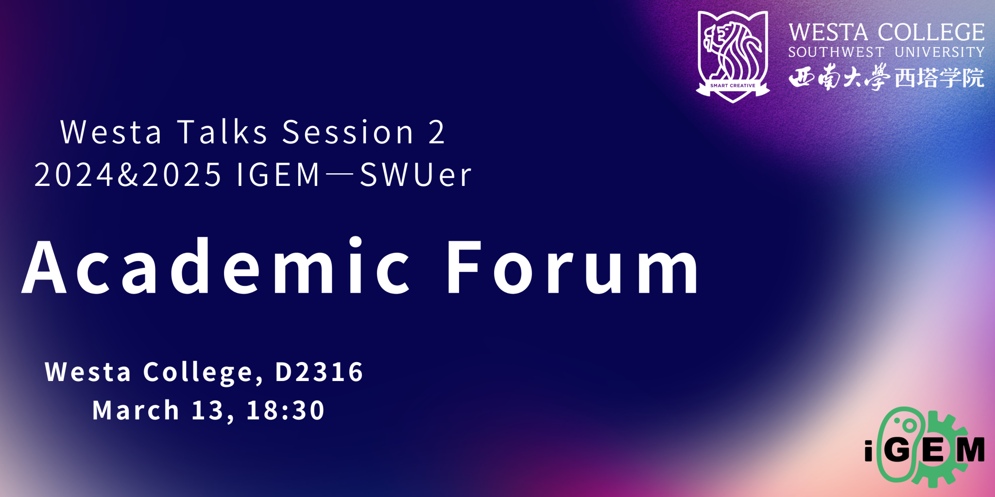 Westa Talks(第2期)活动预告:2024iGEM 团队交流会