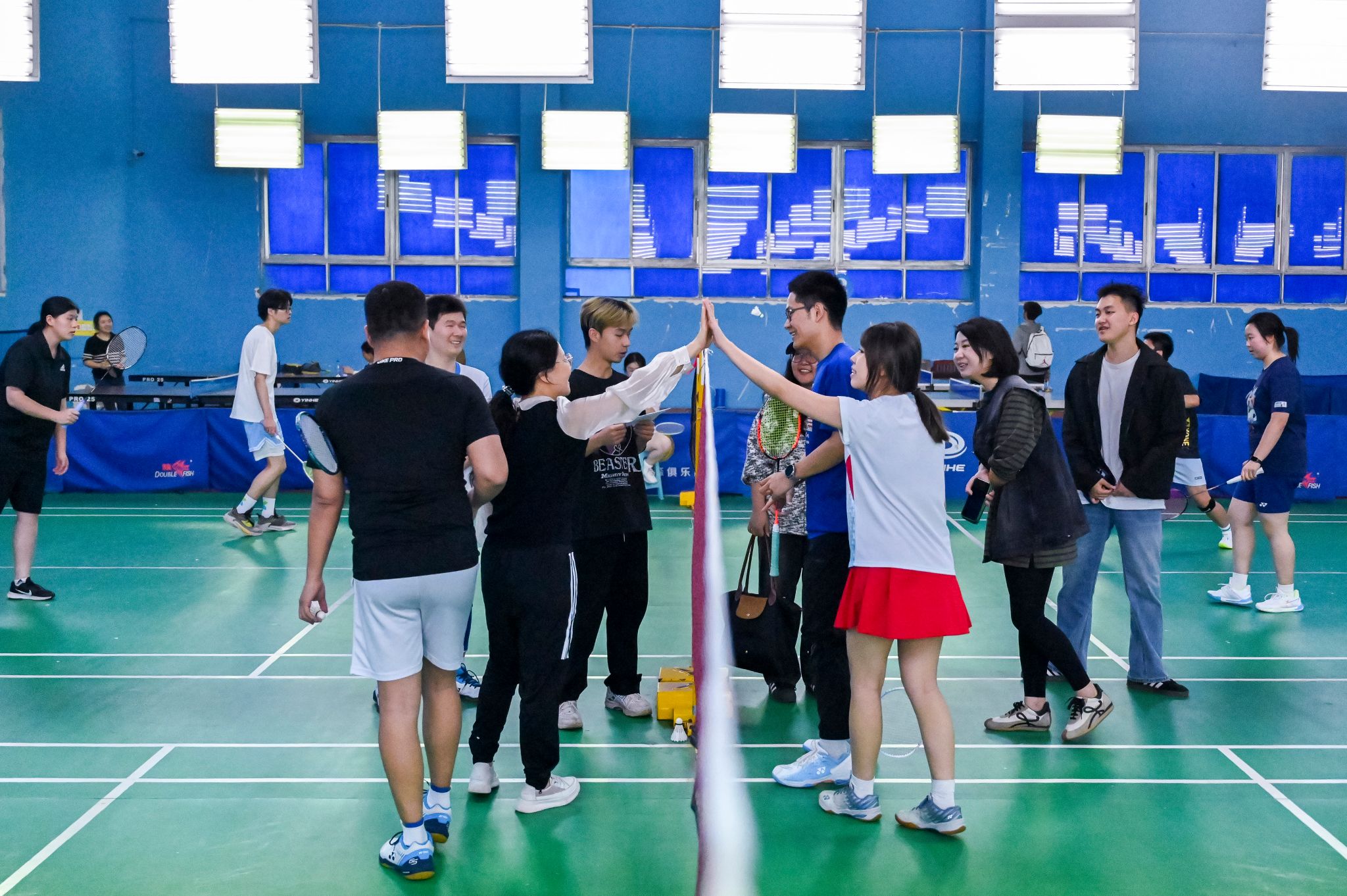 4月25日下午,公司四运羽毛球馆内热情洋溢,一场别开生面的师生羽毛球友谊赛在此火热开启。公司教职工与员工们同场竞技,以球会友,在挥拍间展现师生风采,在互动交流中拉近彼此距离。