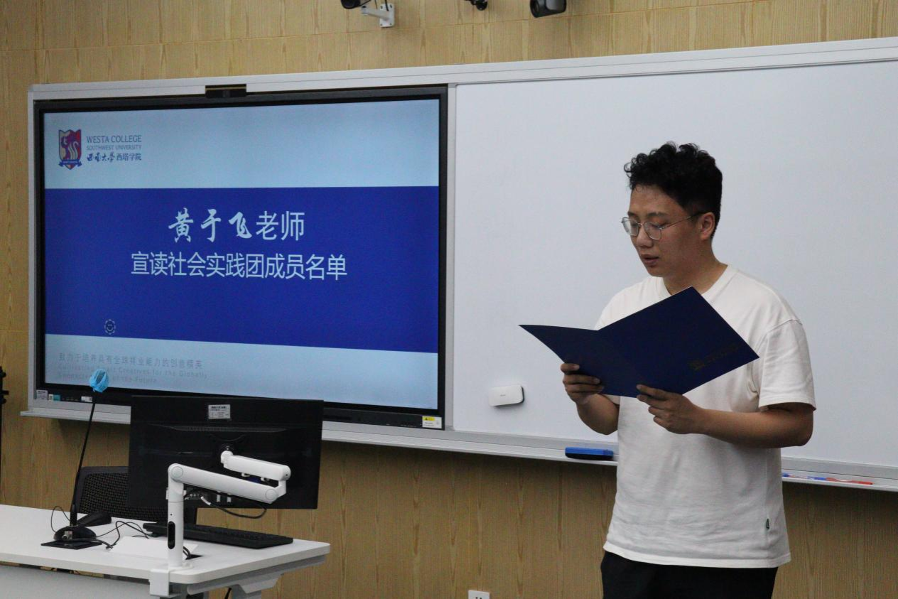 仪式伊始,黄于飞老师宣读实践团成员名单与分组情况,每一个名字的响起,都代表着一份即将奔赴基层的责任。