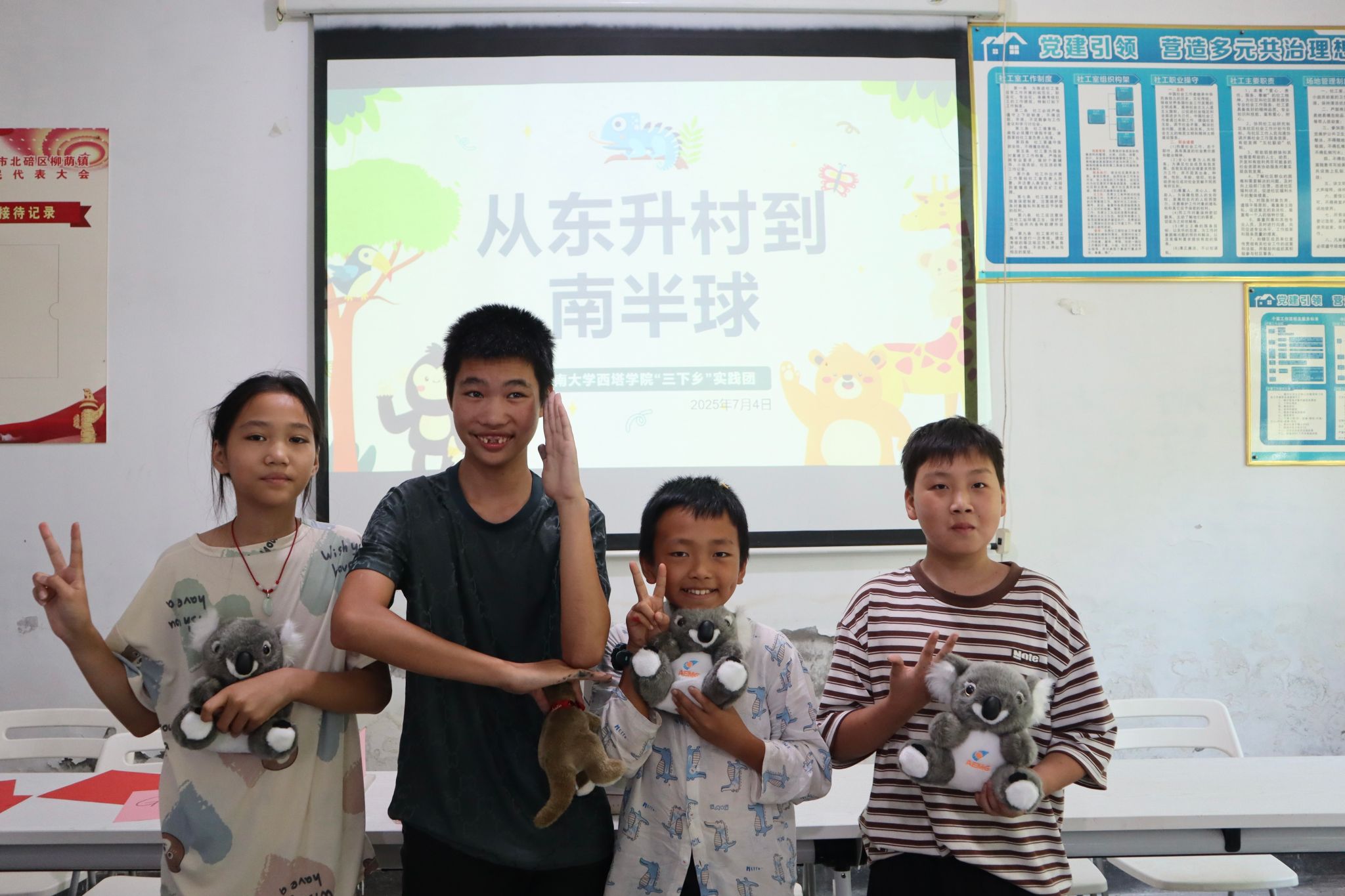 情系留守儿童,西塔学子们充分发挥中外合作办学优势,为东升村的孩子们带来了一堂别开生面的“澳大利亚特色文化课堂”。