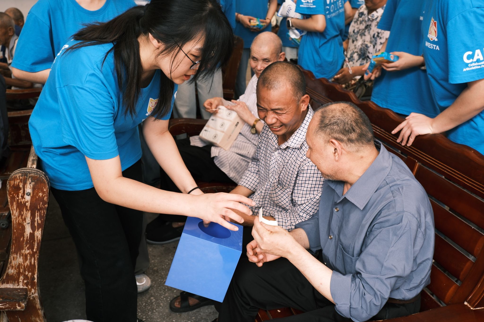 白发与青春的相遇,定格为最温暖的画面。西塔学子们表示,能为老人们带来快乐,再累也值得。学子们用行动传递温情,在服务中深刻体会到风险的价值与青春的担当。