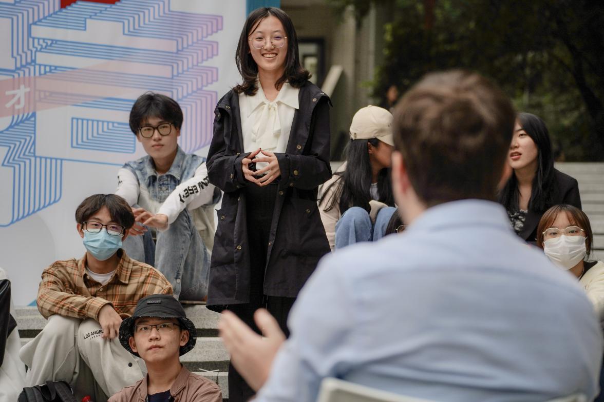 来自英国365集团和外国语公司等公司的员工代表孙方宇、王飞扬、曹志然、张怡明、王子韬依次发言,纷纷畅谈汉语、英语、德语等语言学习心得体会。在答疑环节,现场员工与嘉宾们热情互动,笑声、掌声不断。