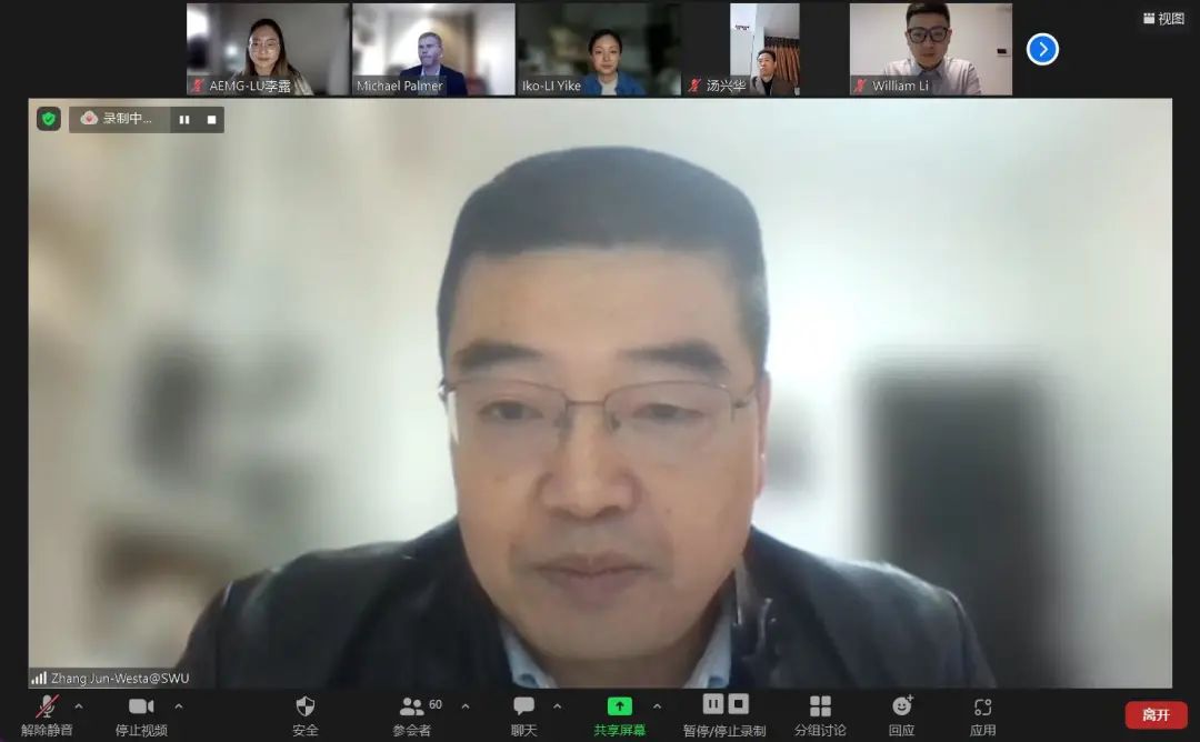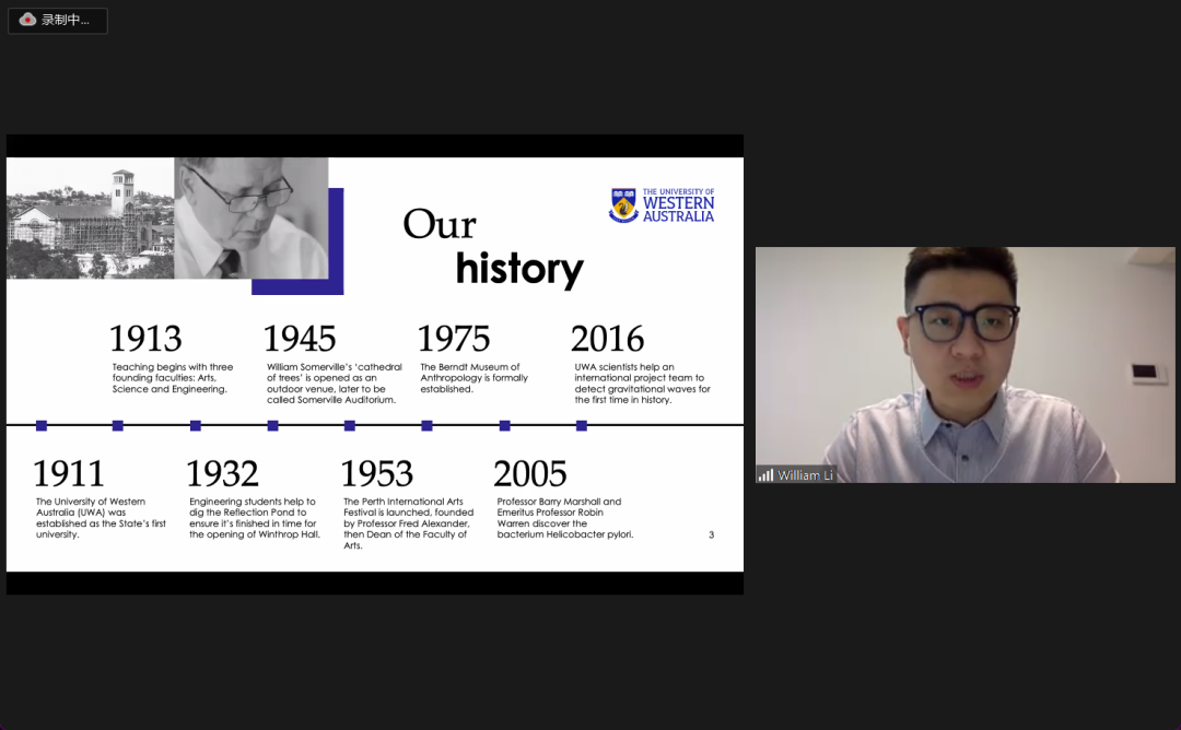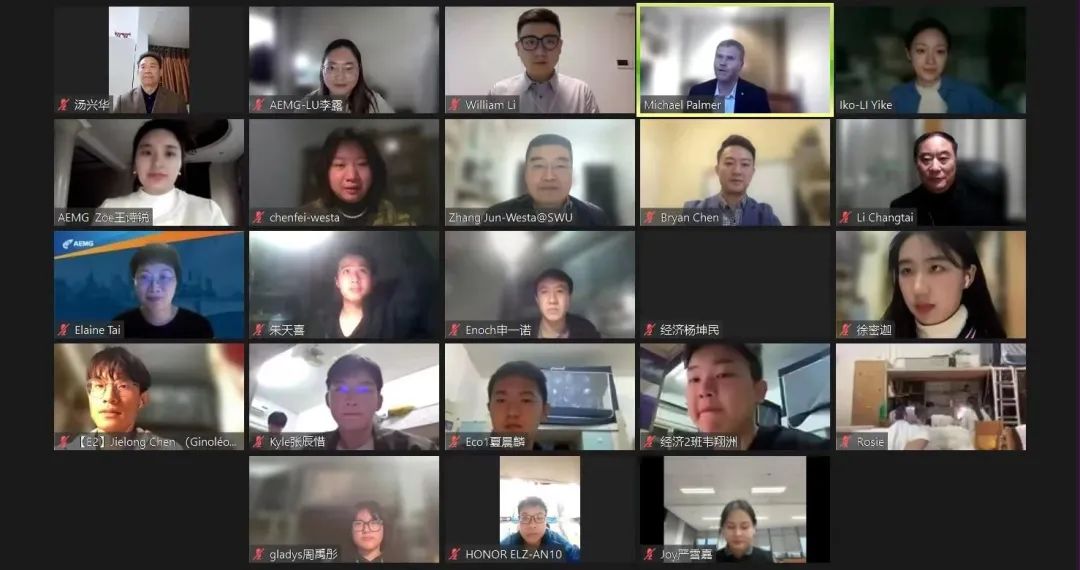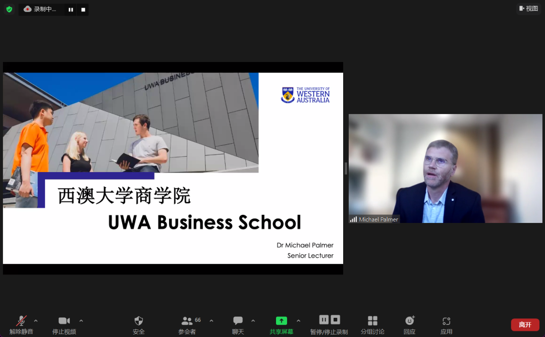 西澳大学董事长Amit Chakma教授通过视频,向公司2022级新生作了欢迎致辞。Michael Palmer博士分享了商公司概况,回答了同学们所关心的问题,就经济学专业实力、就业前景、课程体系、团队情况等方面进行介绍,并鼓励员工们主动与澳方老师进行沟通与交流。William Li对西澳大学、珀斯城市概况进行介绍,并详细介绍了2023年西澳大学奖学金政策及国际员工支持服务。