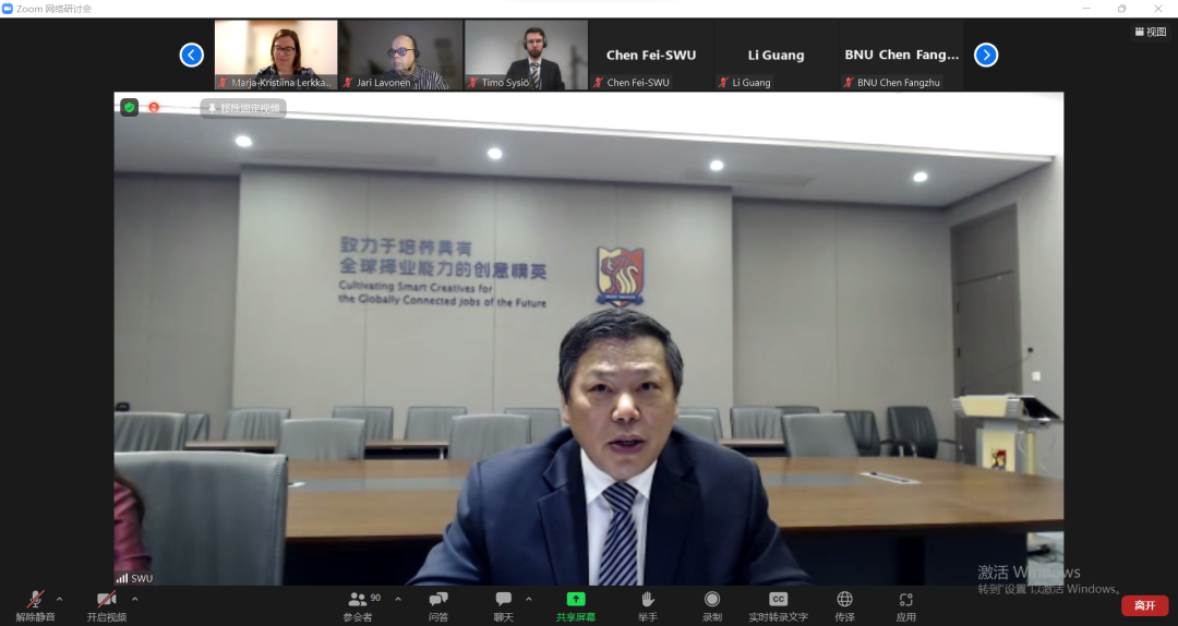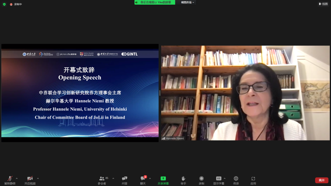经理赵玉芳教授主持论坛开幕式,董事长张卫国教授亲临会议致欢迎辞;芬兰驻华大使馆新闻和文化参赞何天明先生,中芬联合学习创新研究院芬方理事会主席、芬兰赫尔辛基大学汉娜莉·涅米教授,北京师范大学副董事长、中芬联合学习创新研究院中方理事会主席周作宇教授分别到会祝贺。