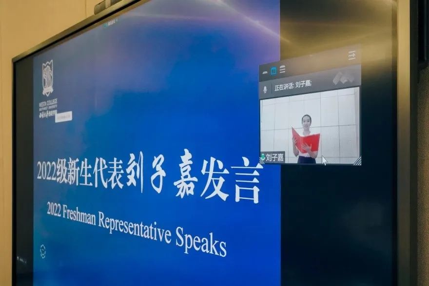 2022级经济学专业的刘子嘉作为新生代表发言。她意气风发、慷慨激昂的表达成名一名西塔人的激动与自豪,并承诺,作为新时代的西塔人,要立鸿鹄志,做奋斗者;要珍惜时间,做自律者;要坚守初心,做奉献者。