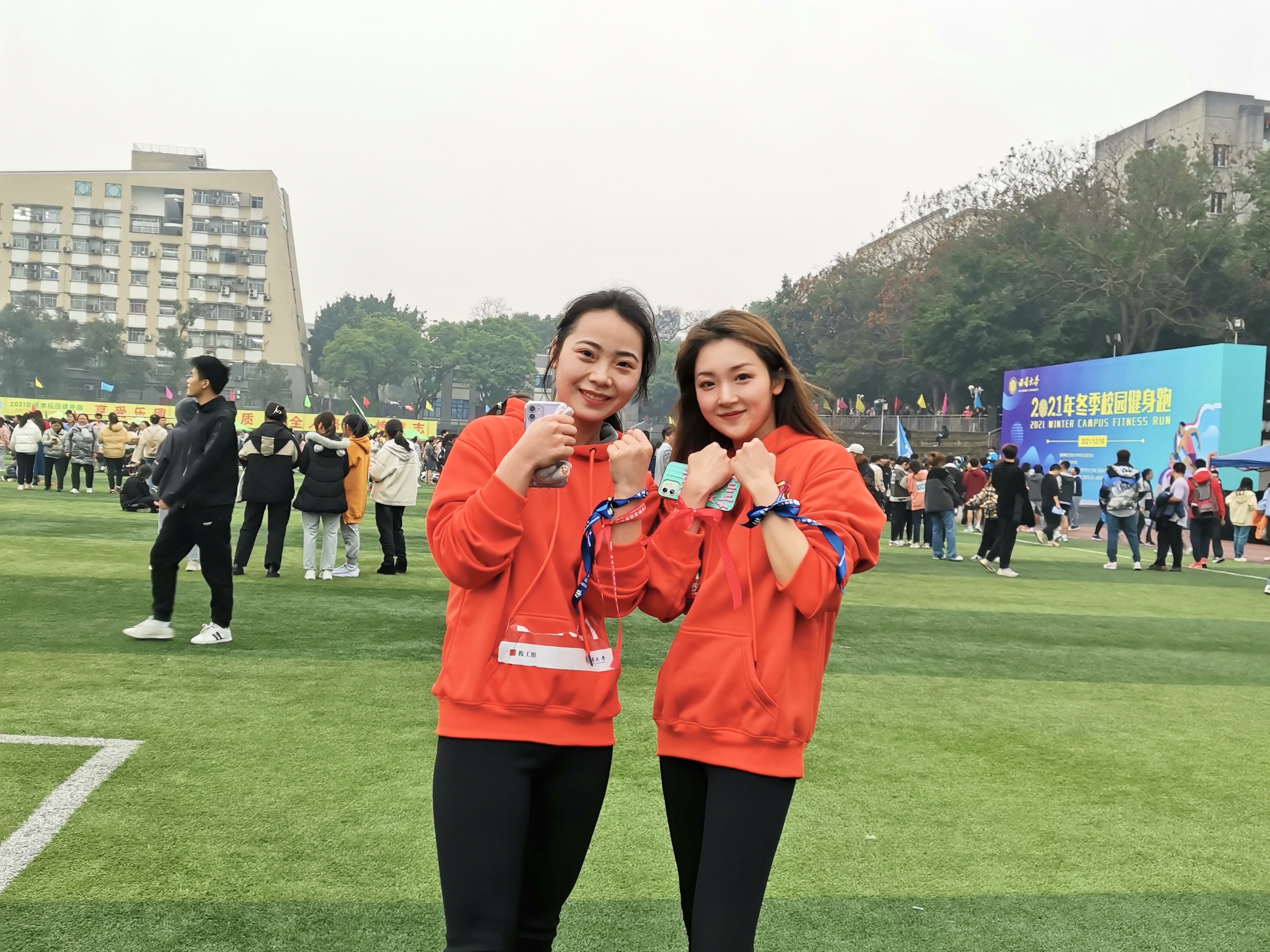 西塔健儿们朝气蓬勃,洋溢着青春的活力,奔跑在冬日的西大校园里。
