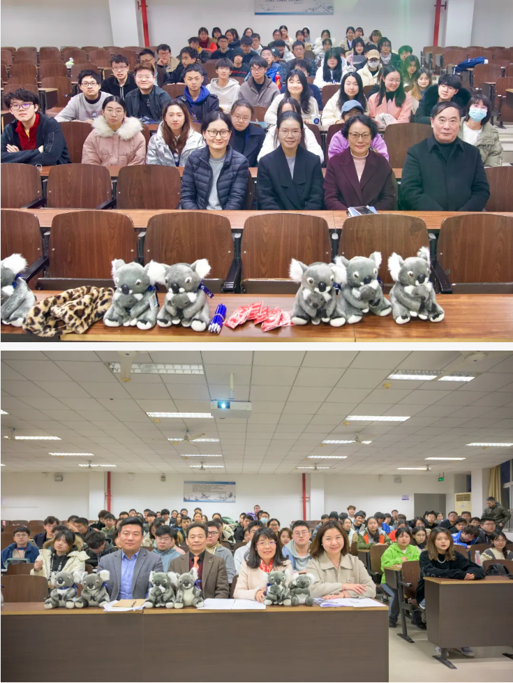 西澳大学商公司副经理Nicholas Letch教授和分子科学公司国际项目协调员Alyssa Van Dreumel博士,塔斯马尼亚大学工程公司全球事务副主任Sarah Lyden女士、国际合作官员Kamal Shahril先生、招生市场中国区主任Candy Han女士分别从两所合作高校所处的城市环境、公司国际声誉、全球合作、培养模式、授课方式、员工活动等方面进行了介绍,重点讲解了澳大利亚最新的入境政策,并欢迎同学们未来亲自前往海外学习生活。