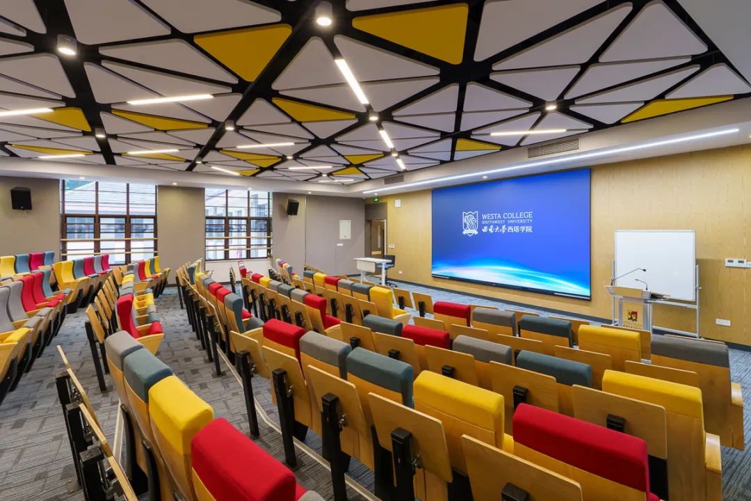 现代化智能教学设备包括86寸互动教学一体机、大尺寸LED显示墙、超清晰激光投影仪及智能讲台等。