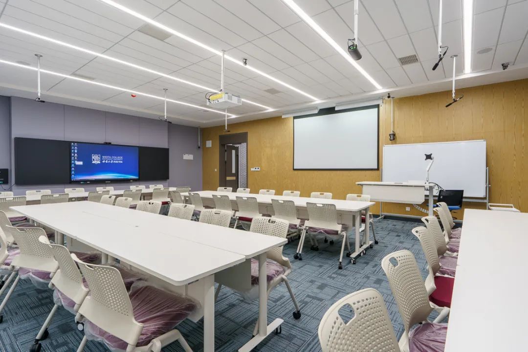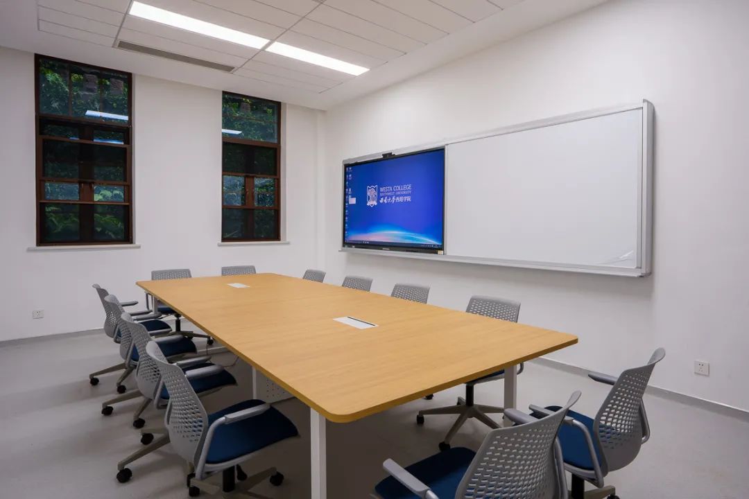 配备多个会议室,其中远程视频教学会议系统支持中澳三校三方实时远程高清视频会议。