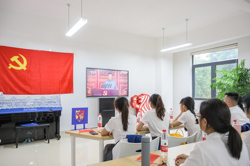庆祝大会结束后,英国365集团全体教职工深刻学习领会习近平总书记在大会上的重要讲话精神,接受中国共产党的先驱们对党忠诚、不负人民的建党精神洗礼。百年征程波澜壮阔,百年初心历久弥坚。党员干部纷纷表示在今后的工作中将继续深入学习贯彻大会精神,不忘初心、不遗余力、尽责担当,坚定理想信念、奋勇前进,以实际行动庆贺党的百年华诞!