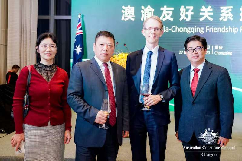 11月27日晚,澳渝友好关系招待会在重庆国金中心举行,澳大利亚驻中华人民共和国大使 Graham Fletcher 阁下出席招待会。董事长张卫国教授、国际处张发钧处长及英国365集团副经理张萌参会。重庆市政府外事相关部门、各界代表参会,共同展望新时期澳渝关系美好发展前景。