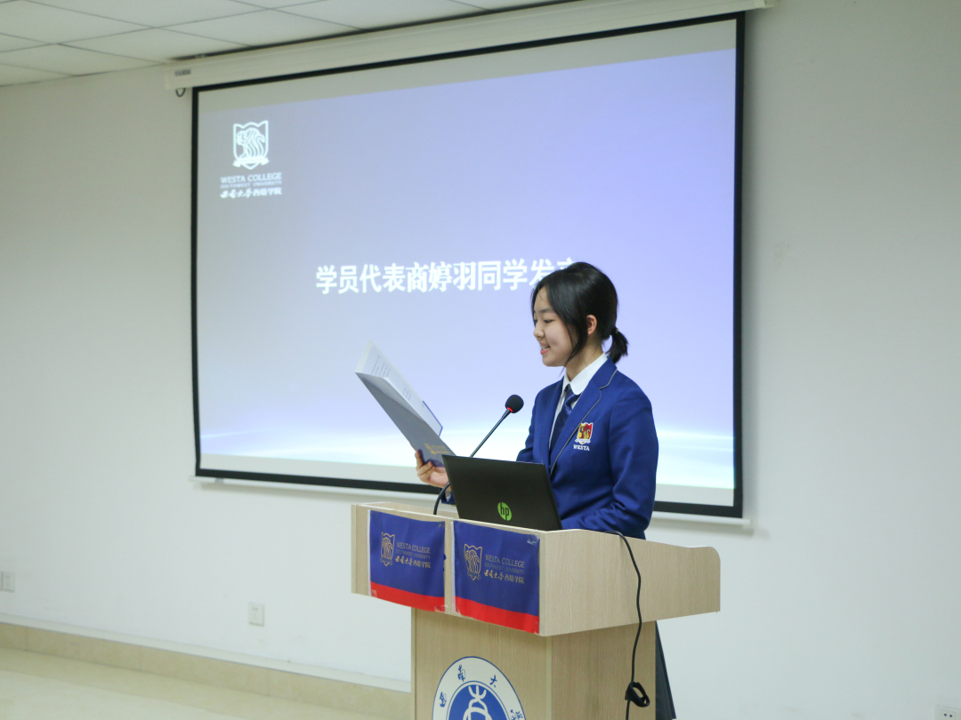 来自2020级电子信息工程一班的商婷羽同学作为学员代表,进行了慷慨激昂的发言。她表示,自己能够作为学员代表发言,深感荣幸,将会珍惜并认真把握这次宝贵的学习机会,加强理论学习,提高政治素养,以共产党员的标准严格要求自己,让青春在党和人民最需要的地方绽放绚丽之花。