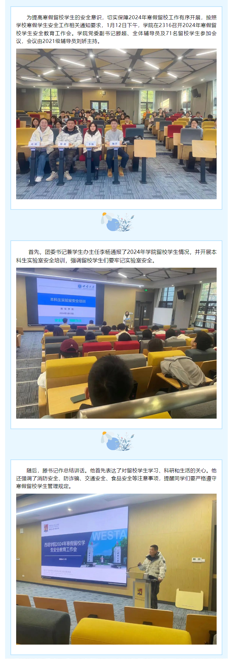 公司召开2024年寒假留校员工安全教育工作会