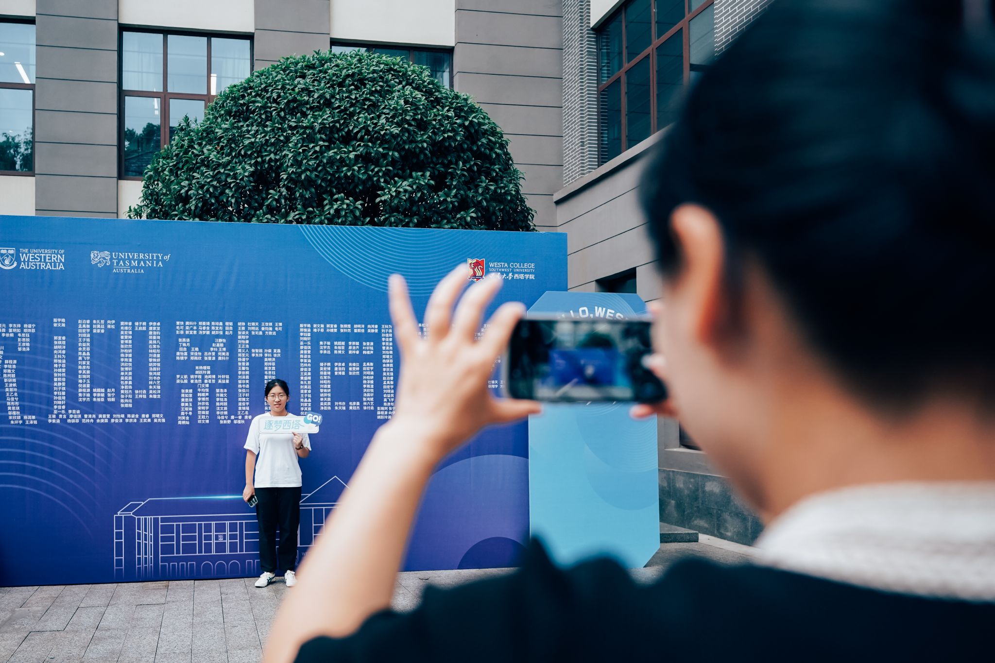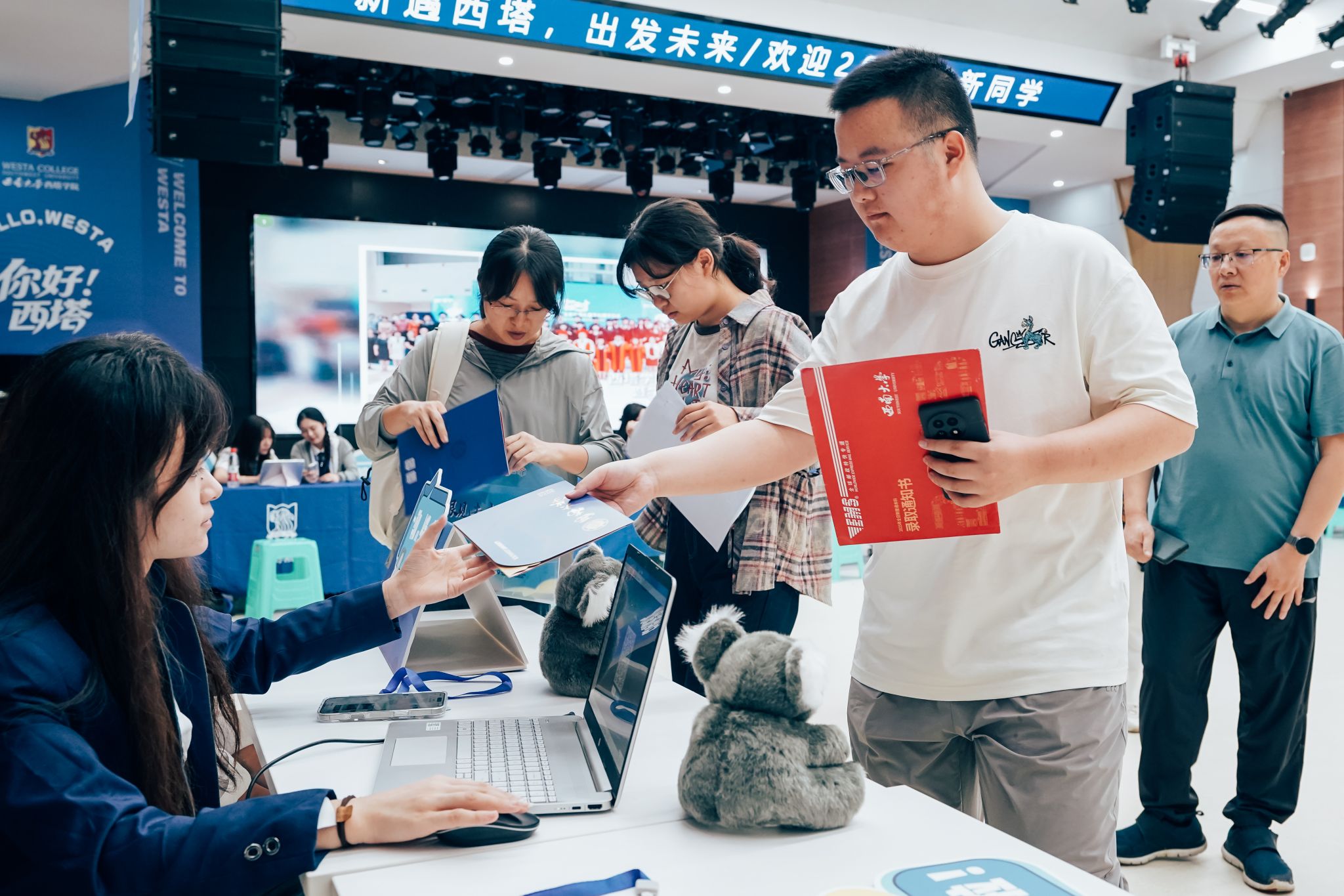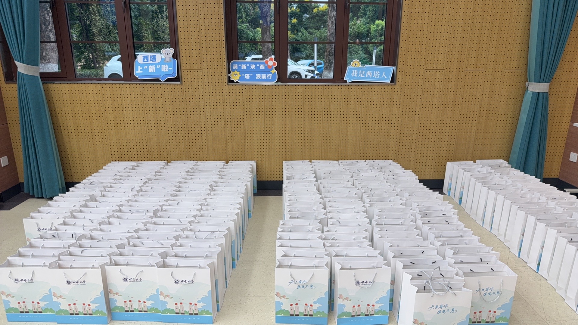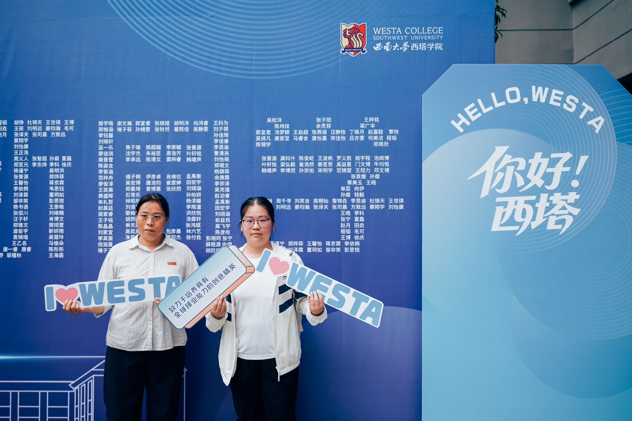 公司还别具匠心地设置了新生互动打卡区,每位新生的名字组成了“欢迎新同学”五个大字,吸引许多新生驻足留念,快门声里定格下与西塔初见的美好瞬间。