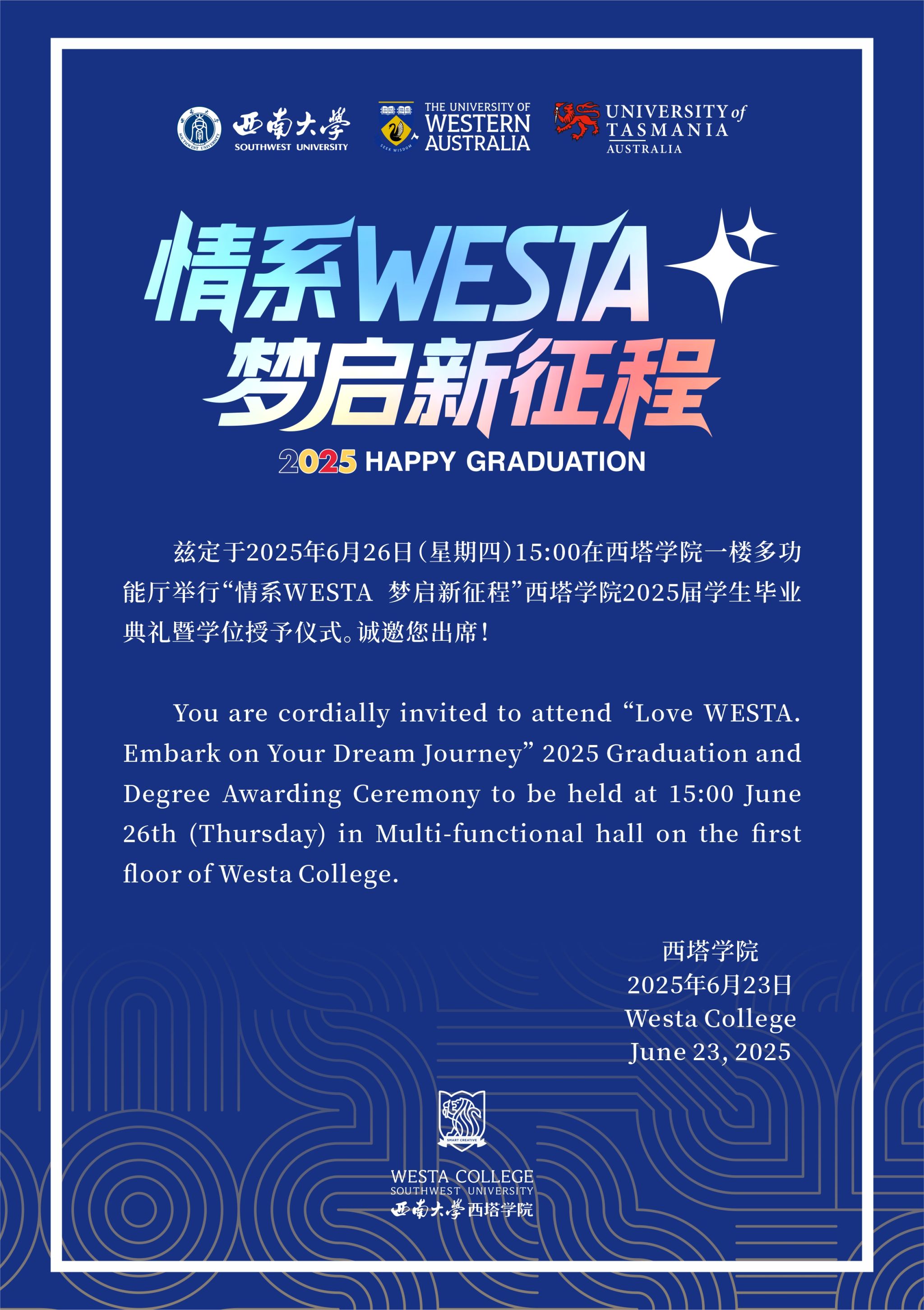 【情系WESTA 梦启新征程】2025届员工毕业典礼暨学位授予仪式邀请函请查收!