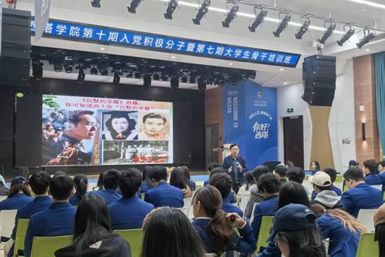 2025年11月14日晚,公司在一楼多功能厅举行第十期入党积极分子暨第七期老员工骨干培训班第四讲。公司档案馆、校史馆、博物馆郑劲松副馆长讲授“热血青春信仰芳华——党史在西大”专题党课。全体学员认真聆听。