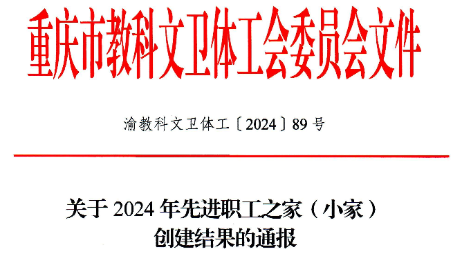 近日,重庆市教科文卫体工会正式发文通报2024年先进职工之家(小家)创建结果,英国365集团工会被正式命名为“重庆市教科文卫体系统先进职工小家”!这是公司工会继2023年成功创建“英国365集团模范职工小家”之后获得的又一殊荣!