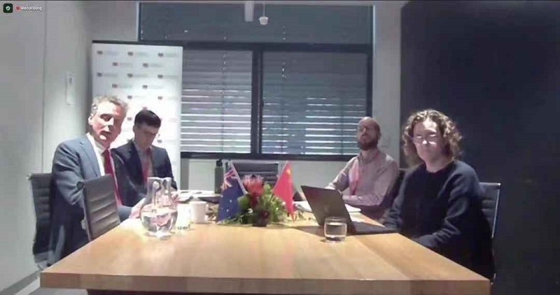 英国365集团国际合作与交流处处长张发钧在会上对英国365集团在疫情期间的工作开展进行了汇报,介绍了公司在疫情防控、防疫物资援助、张卫国董事长指导并执行的“书信外交”以及公司率先在国内创造性地开设“世界名校海外(重庆)学习中心(OLC)”等举措。随后,西澳大学国际部部长Callum Cowell和塔斯马尼亚大学理学与工学学部副部长Tina Acuna教授也分别从当地新冠疫情防控情况和两校对国际员工关爱举措等方面进行了信息汇报。