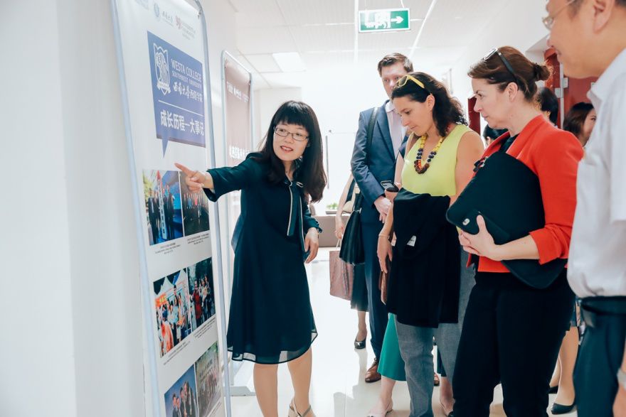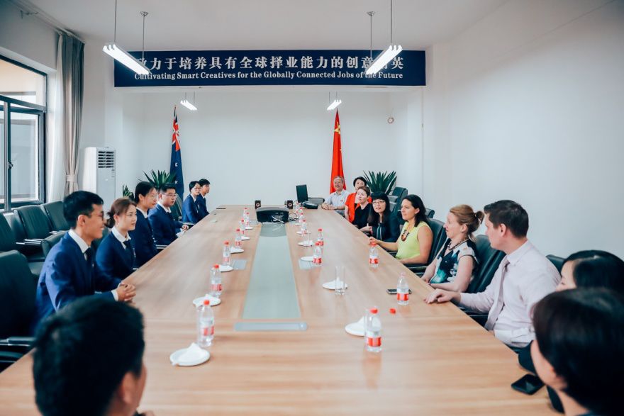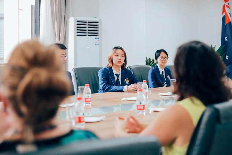 随后,在西塔师生的热烈欢迎中,客人们来到公司参观,并与师生座谈交流。西塔学子向澳大利亚的客人们简要分享自己在西塔学习的所感所想。贺蓉歌女士表示同学们英语很好,学习也非常用功。格蕾塔·多琪女士希望西塔学子们朝着目标奋斗,一定能成为具有全球择业能力的创意精英。