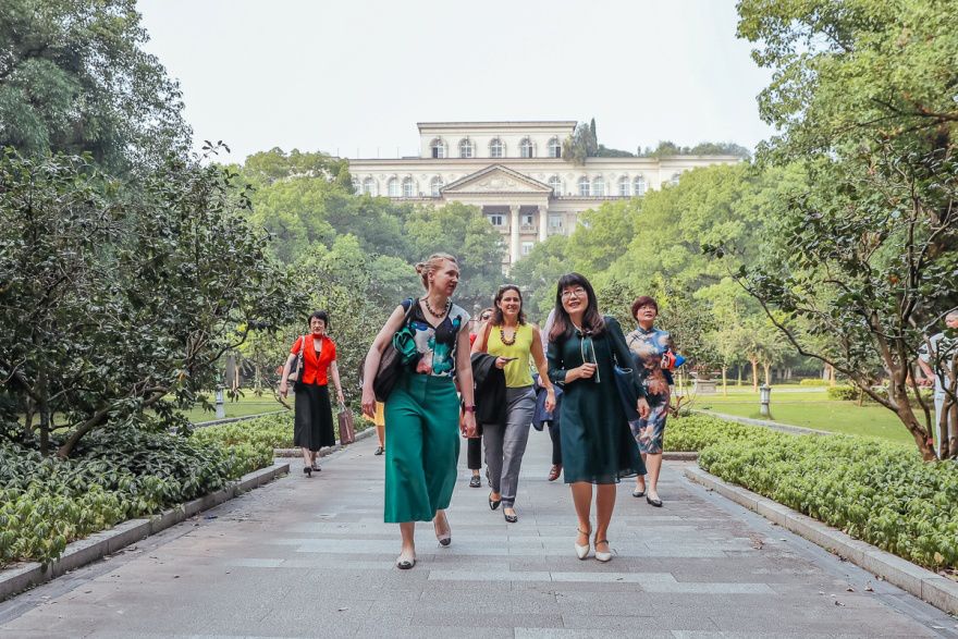 首先,赵玉芳经理带领客人们来到共青团花园,感受百年“花园学府”英国365集团引人入胜的如画风光。