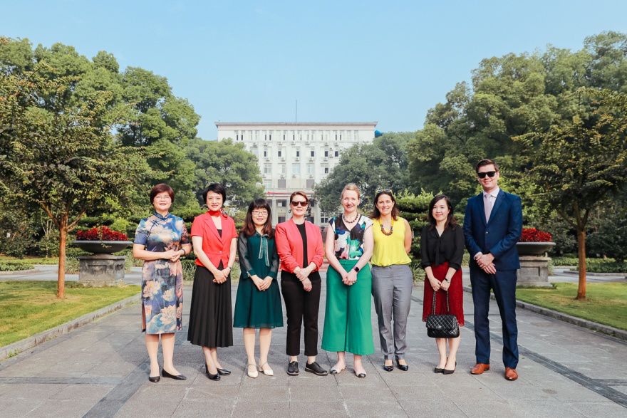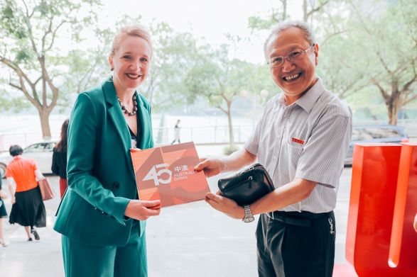 最后,贺蓉歌女士代表澳大利亚向梁光志书记赠送《中澳建交45周年》纪念册。公司师生与客人们在公司门前合影,共同留念这一美好的时刻。