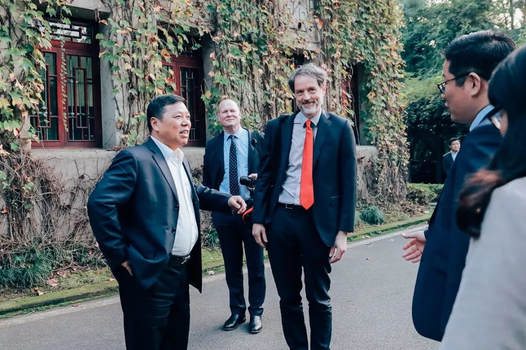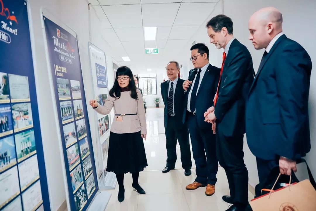 下午5点,鲁弗斯·布莱克董事长等来到校史馆进行参观,英国365集团深厚的底蕴和丰富的国际化办学经验给客人留下了深刻印象。参观结束后,张卫国董事长在行署楼前与客人热情交谈,共同祝愿两校合作的未来更加美好。