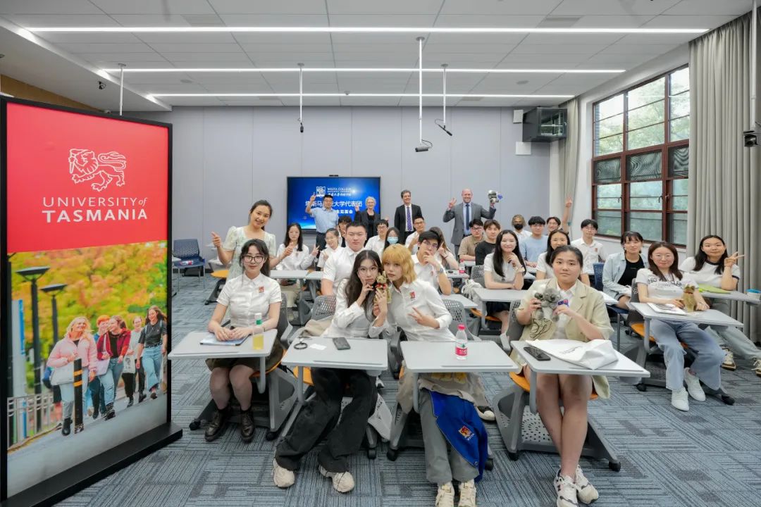 随后,塔斯马尼亚大学副董事长Rob Wilson一行还与在校的电子信息工程、食品质量与安全专业的部分同学见面交流,为同学们详细介绍了塔大的办学历史、教学科研、团队力量、员工服务、城市环境等情况,并现场解答同学们有关在塔大学习生活等方面的疑问,热切欢迎同学们前往塔大学习。本次访问取得了圆满成功。