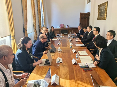 塔斯马尼亚大学常务副董事长Rob Wilson、工程公司经理Tim Finnigan、农业研究院Dugald Close一行9人,西澳大学全球交流办公室David Connell、工程公司经理Tim Sercombe、分子科学公司经理Paul Low一行6人与访问团先后会谈。两校负责人分别致欢迎辞,欢迎代表团赴澳,赞赏三校在合作办学和人文交流方面所取得的成绩,强调面对面交流在三校合作和员工成长方面的重要性,并对获得“董事长激励奖”的在澳同学们表示祝贺。