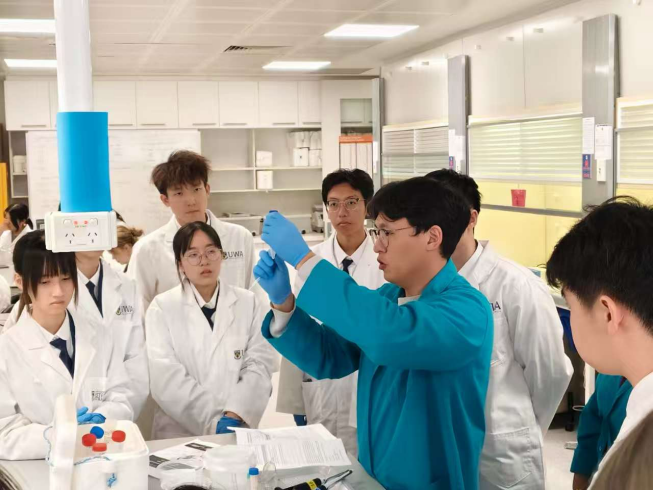 生物技术专业同学在Prof Gavin Flematti带领下,参观了化学实验室。实验室里,Joseph Oh与Mansi Manishkumar Parekh指导两专业同学提取鸡肝DNA,大家在老师的指导下纷纷开始动手实践,最后成功得到了样品。这种触碰生命奥秘的科研成就感,让大家心里都漾着雀跃。