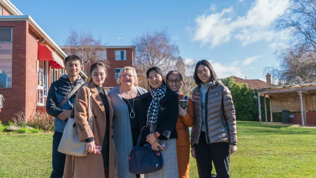 ▲外方老师带领同学们参观塔大博物馆和图书馆