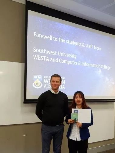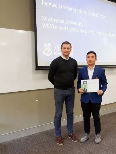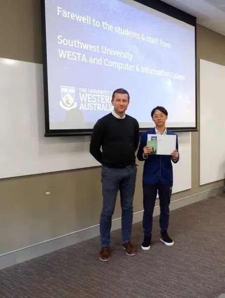 此次西澳之行,我感触颇深。触动我的不仅仅是别样的异域文化,更是公司满溢出来的学术氛围。从critical thinking到innovation,从lecture到laboratory,不同于国内的教育模式让我耳目一新,充满感染力和参与感的课堂让我深深着迷,同时也加深了我对西澳大学的憧憬与向往。Seek for wisdom!这次访学虽然只有短短两周,但我可以预想到来这里之后的学习生活,一定是“求知,求识,求真,求道”,充实而有意义!