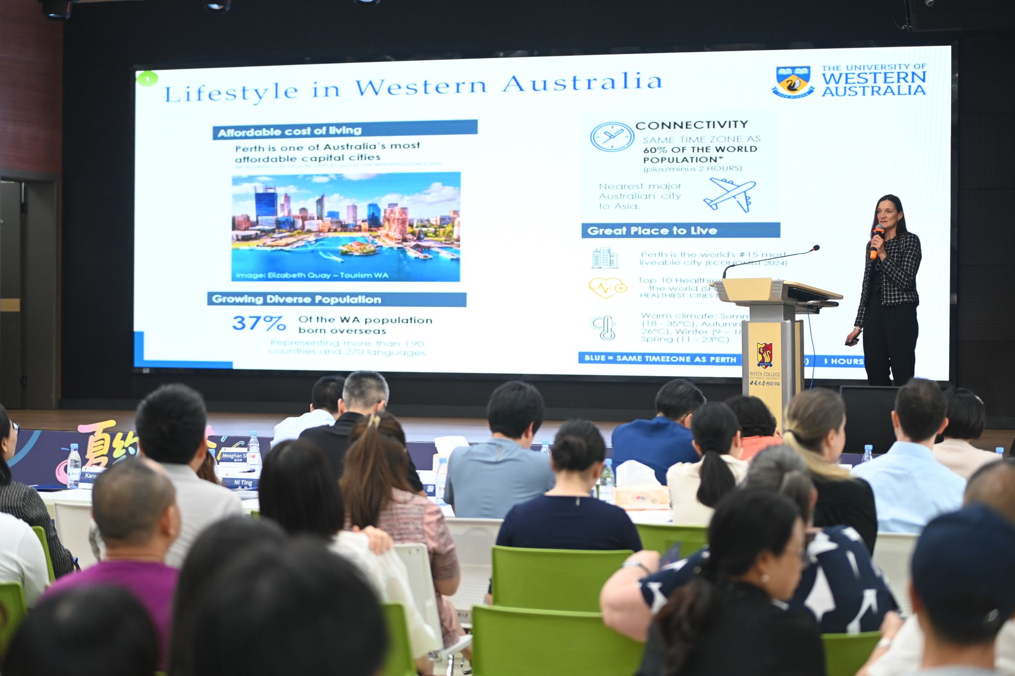 西澳大学全球事务部负责人Rachel Darovic介绍了该所大学的办学特色、课程设置、奖学金政策、校园生活等,欢迎各位考生们的加入。