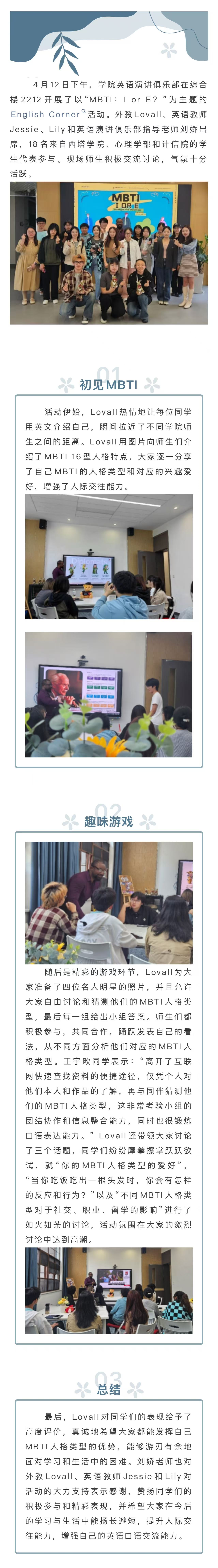 【西塔英语角(Westa English Corner)】第13期:MBTI:I or E?