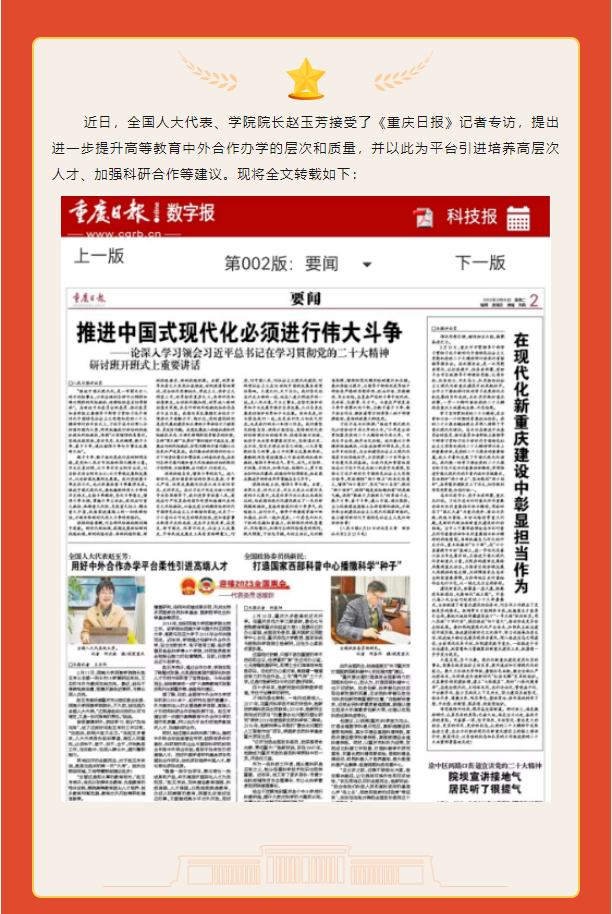 全国人大代表、公司经理赵玉芳接受《重庆日报》记者专访